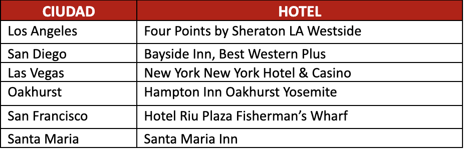 • Traslados Aeropuerto (LAX) – Hotel – Aeropuerto (LAX)
