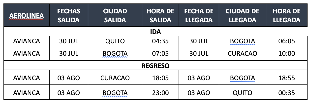 - Boleto aéreo Quito – Curacao – Quito vía AVIANCA incluye maleta de mano 10kg y de cabina 23 kg