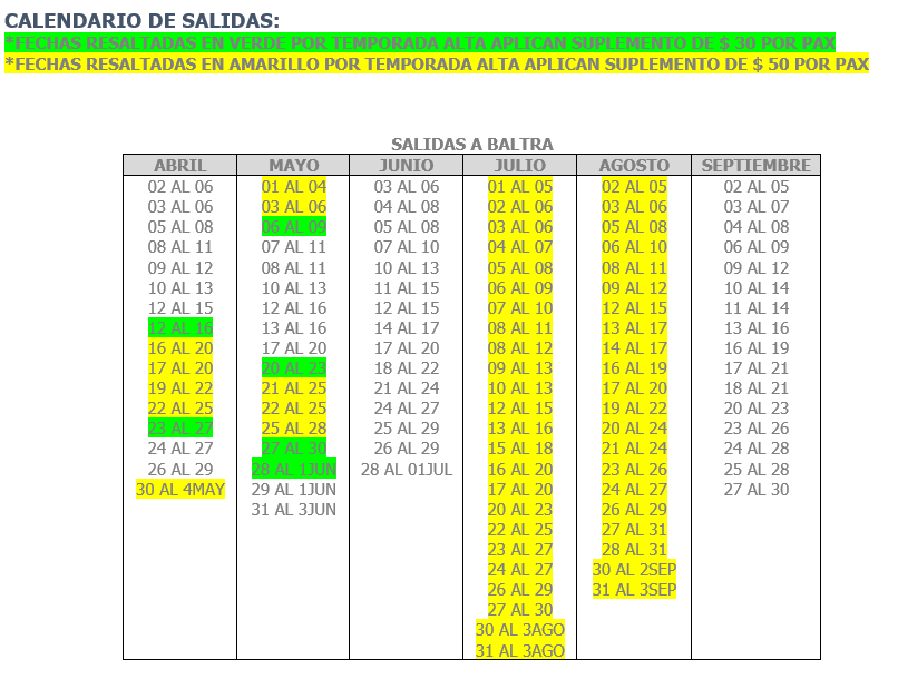 SALIDAS DESDE GUAYAQUIL Y QUITO