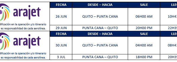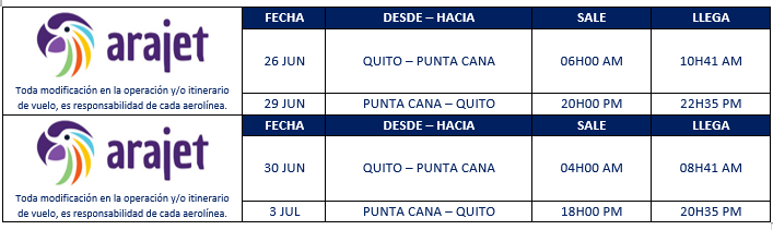 - Boleto aéreo Quito – Punta Cana – Quito.